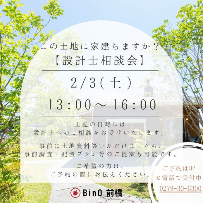 お持ちの土地に家を建てようと考えている方、 設計士に相談してみませんか? 事前に土地資料等いただけましたら、 事前調査や配置プランのご提案も可能です。 より具体的な…
