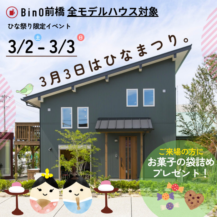 3月3日はひなまつり! だんだんと春が近づいてきてうれしくなりますね。 BinO前橋ではひなまつりイベントを開催いたします!  …
